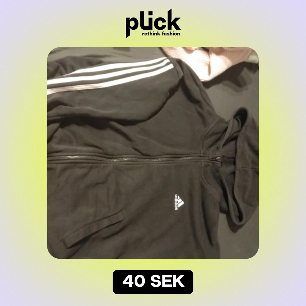 Svart basic adidas kofta, väl använd finns lite slitage på muddarna vid armarna. Står att den är L men mer som en M