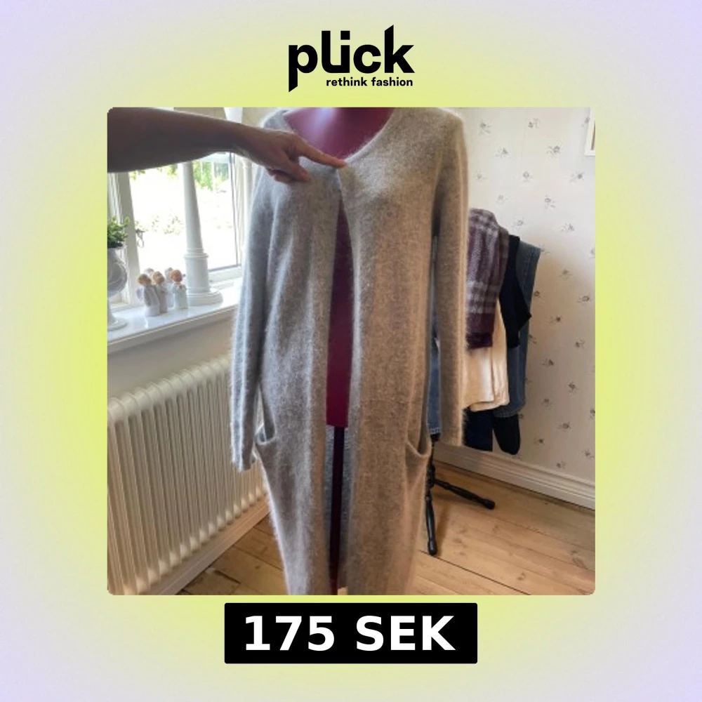 Säljer en supermjuk och fluffig ljusgrå lång kofta från Vila. Koftan har öppet framtill, två stora fickor och är tillverkad i en mix av angora och nylon. Den är lite nopprig på insidan, men inget som syns när man har den på sig.