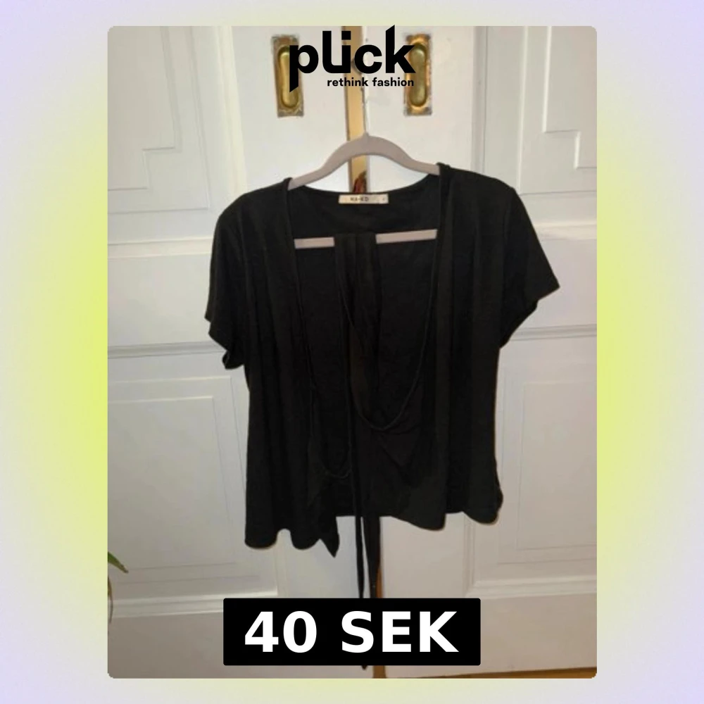 Kortärmad svart kofta från Nakd med öppen front och långa band som kan knytas framtill. Tunn och mjuk trikå som faller snyggt. Perfekt att slänga över ett linne för en avslappnad look.