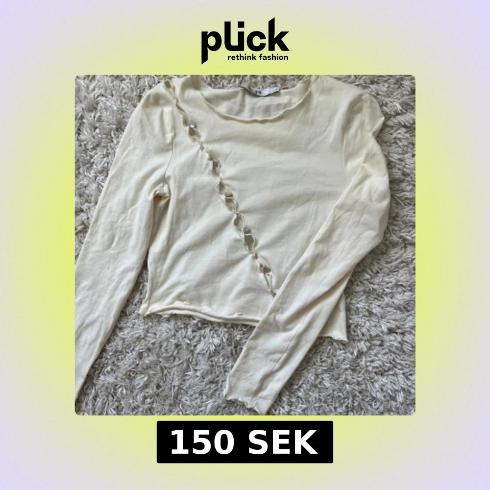 Säljer en vit långärmad topp från NA-KD i mjuk bomull. Toppen har en unik sned knapprad framtill med dekorativa knappar och en lätt vågig kant vid halsen. Nästan helt oanvänd.