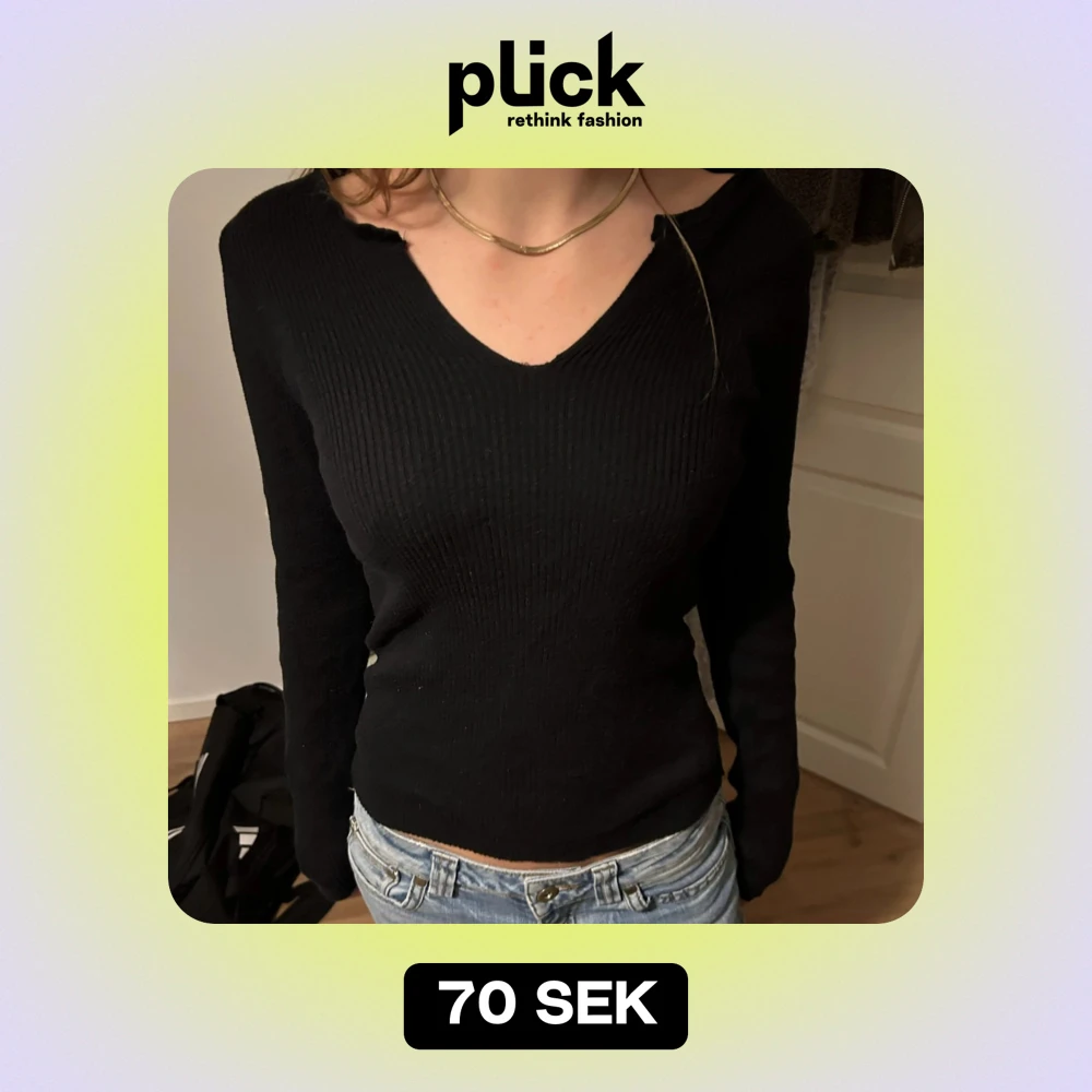 Säljer en stilren svart ribbad tröja med v-ringning. Den är från Na-kd💕