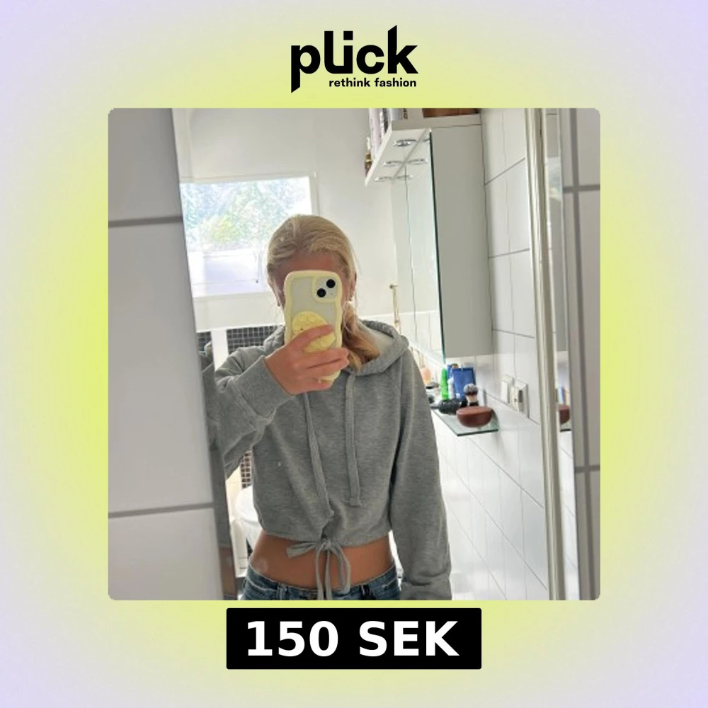 Grå croppad hoodie från NA-KD med snörning i midjan och huva. Tröjan har långa ärmar och en relaxed fit som ger en chill vibe. Perfekt att styla med jeans eller kjol för en casual look.