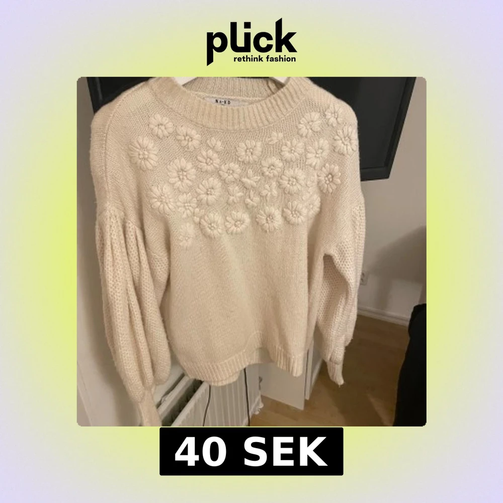 Superfin beige stickad tröja från NA-KD med broderade blommor framtill. Tröjan har en loose passform, ballongärmar och ribbade muddar. Perfekt för att mysa runt i under kyliga dagar.
