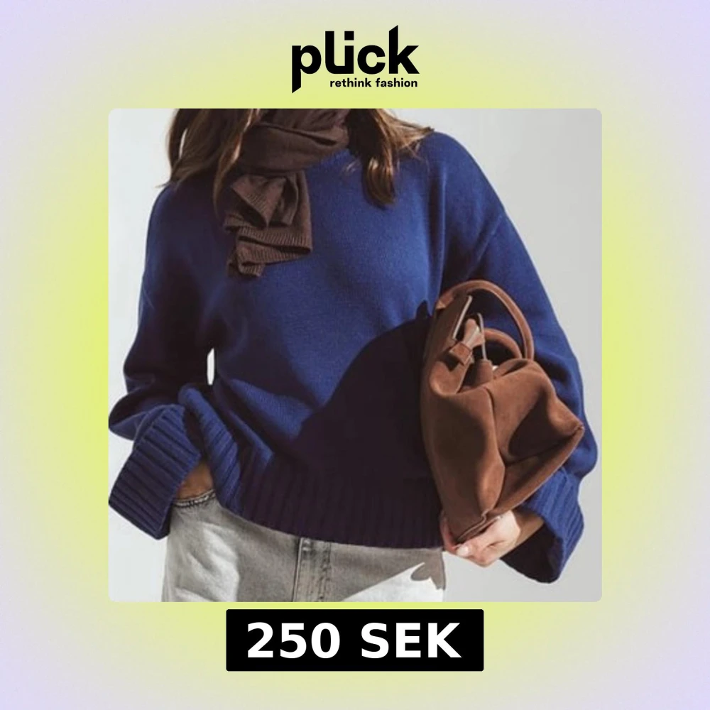Snygg marinblå stickad tröja från NA-KD med breda ribbade muddar vid ärmslut och nederkant. Modellen är loose fit med lång ärm och rund halsringning. Perfekt att styla med jeans eller kjol för en chill look.