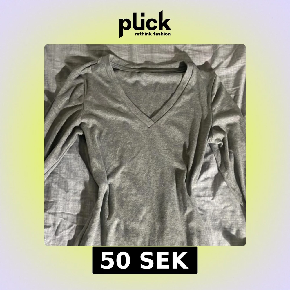 Säljer en enkel och stilren grå långärmad tröja med v-ringad hals. Perfekt basplagg som funkar till det mesta och är riktigt skön att ha på sig. Passar dig som gillar en clean och avslappnad stil.