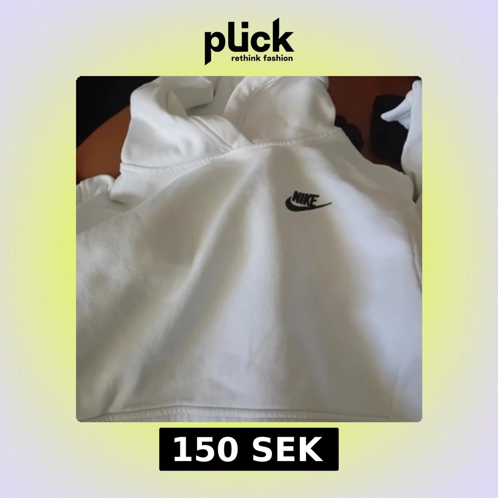 Säljer en klassisk vit hoodie från Nike med svart logga på bröstet. Tröjan har huva och är perfekt för en avslappnad stil. Passar både till jeans och träningsbyxor.
