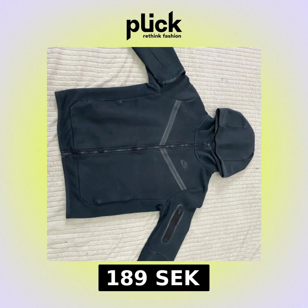 Svart hoodie från Nike i storlek L med hel dragkedja framtill och huva. Tröjan har två fickor på sidorna och en extra ficka med dragkedja på ena ärmen. Snygga detaljer med svarta linjer över bröstet och ärmen. Perfekt för chill eller träning.