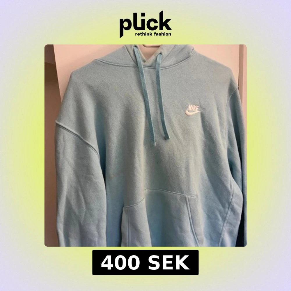 Säljer en ljusblå hoodie från Nike med klassisk logga broderad på bröstet. Tröjan har huva med snörning och en stor magficka. Perfekt för dig som gillar en avslappnad och sportig stil.