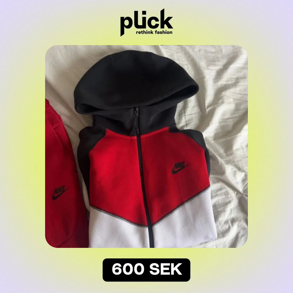 Säljer min Nike tech. Byxorna är i storlek L och hoodien i storlek M. Inga flaws utan väldigt bra skick.