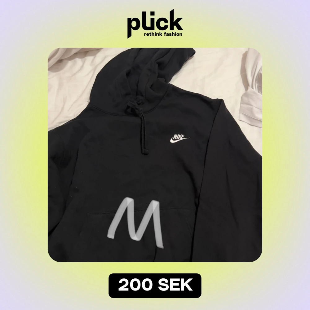 Säljer en klassisk svart hoodie från Nike i storlek M. Den är superbekväm och perfekt för både vardag och träning. Hoodien har en justerbar dragsko i huvan och en stor ficka framtill. Nike-loggan är snyggt placerad på bröstet. Passar perfekt till höst och vinter!