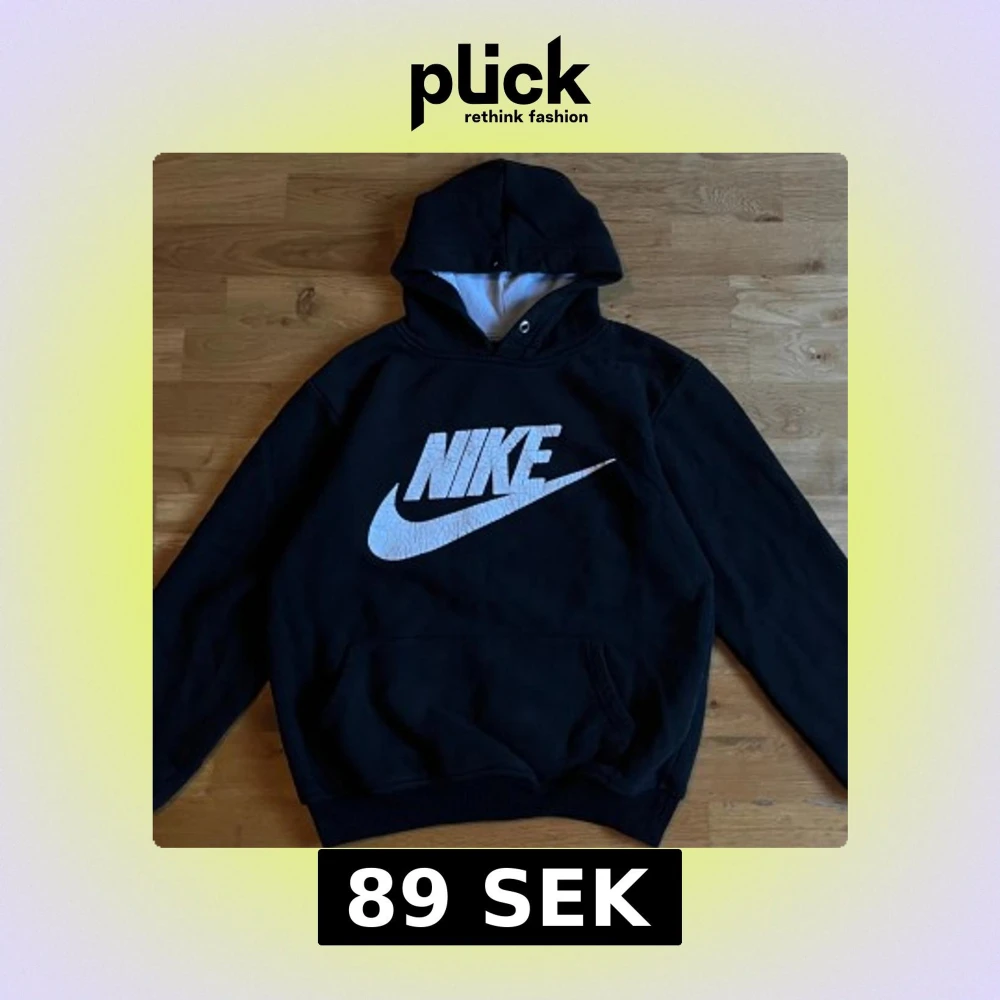 Svart hoodie från Nike med stor vit logga framtill. Klassisk känguruficka och huva med ljus insida. Mjuk och skön bomullsblandning, perfekt för chill eller träning. Långärmad och normal passform.