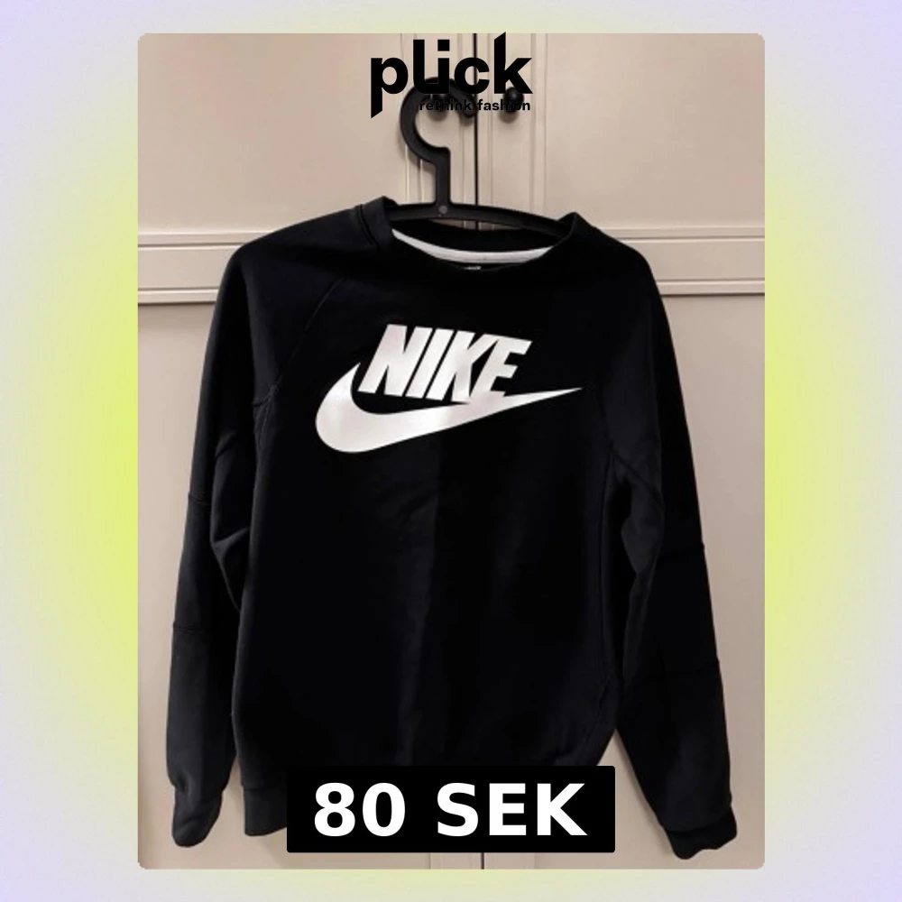 Säljer en svart sweatshirt från Nike i storlek XS. Tröjan har en stor vit Nike-logga framtill och klassisk rund halsringning. Perfekt för dig som gillar sportig och enkel stil. Tillverkad i mjukt material för extra komfort.