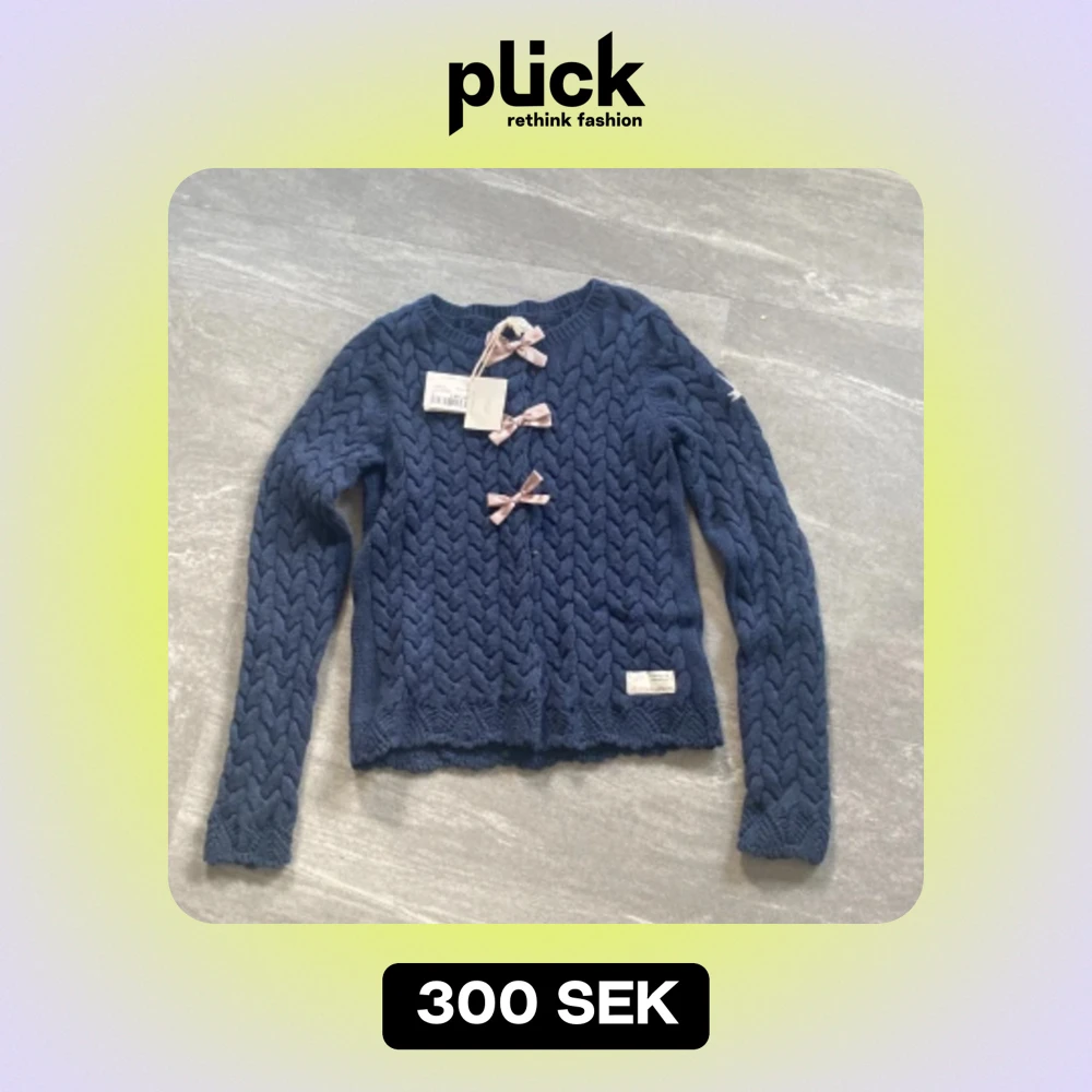 Ny oddmolly kofta med söta rosetter . Stl O Marinblå med ljusrosa rosetter Bomull