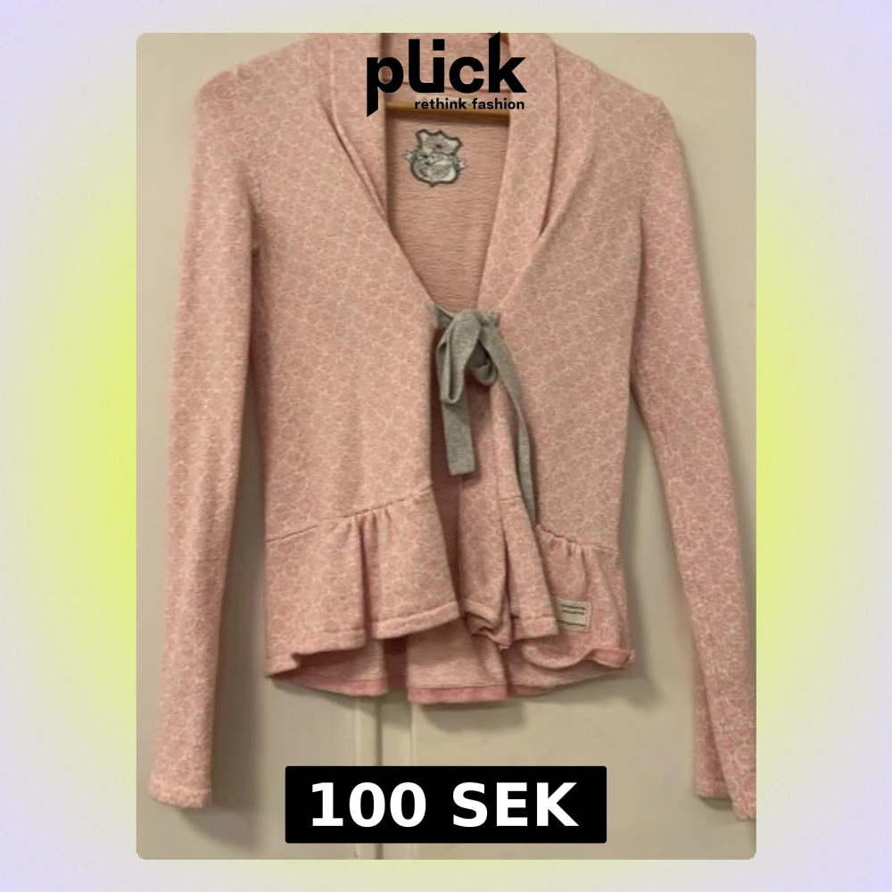 Supersöt rosa kofta från Odd Molly med diskret mönster och grått knytband framtill. Koftan har volangdetaljer vid nederkanten och långa ärmar. Perfekt för dig som gillar romantisk och feminin stil. Materialet känns mjukt och bekvämt mot huden.