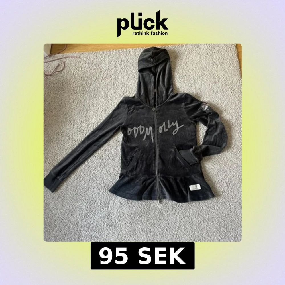 Mysig svart hoodie från Odd Molly i mjuk velour med dragkedja framtill och huva. Snyggt tryck på bröstet och volangdetalj nedtill. Perfekt för en avslappnad stil.