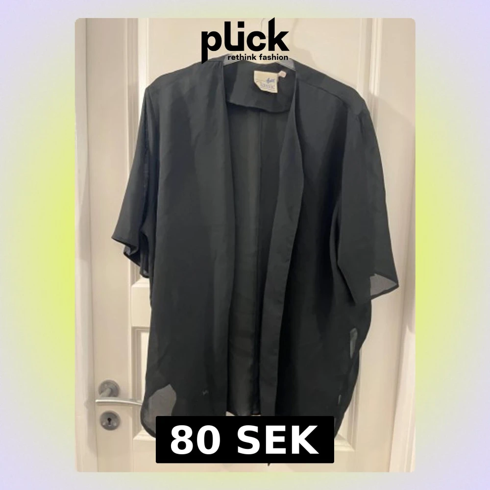 Säljer en svart, tunn och luftig kofta från Airetex Classic. Koftan har öppen front, korta ärmar och är tillverkad i ett lätt syntetmaterial som ger en skön känsla. Perfekt att slänga över en topp för en chill look.