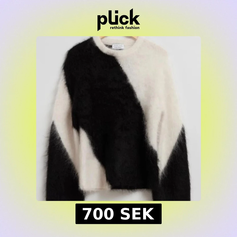 Säljer en supermjuk och fluffig tröja från other stories i svart och vitt. Tröjan har ett coolt diagonalt mönster och långa ärmar.