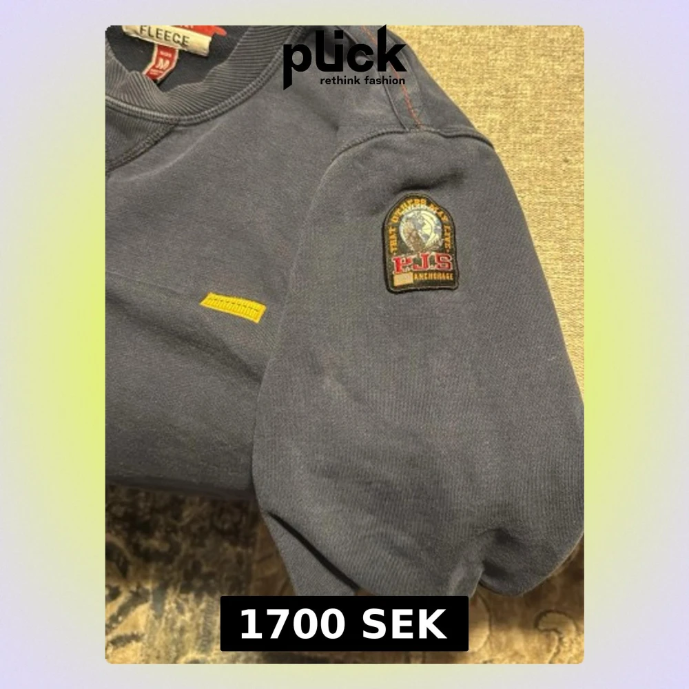 Mörkblå fleece tröja från Parajumpers i storlek M. Tröjan har en patch på ärmen och coola orange sömmar som ger extra detaljer. Klassisk rund halsringning och lång ärm, perfekt för dig som gillar stilrena och funktionella plagg med hög kvalité. Köpt för 2250kr