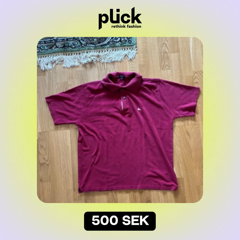 Säljer en snygg vinröd pikétröja från Burberry. Den har en klassisk krage med två knappar och ett diskret Burberry-märke på bröstet. Tröjan är i storlek XL.