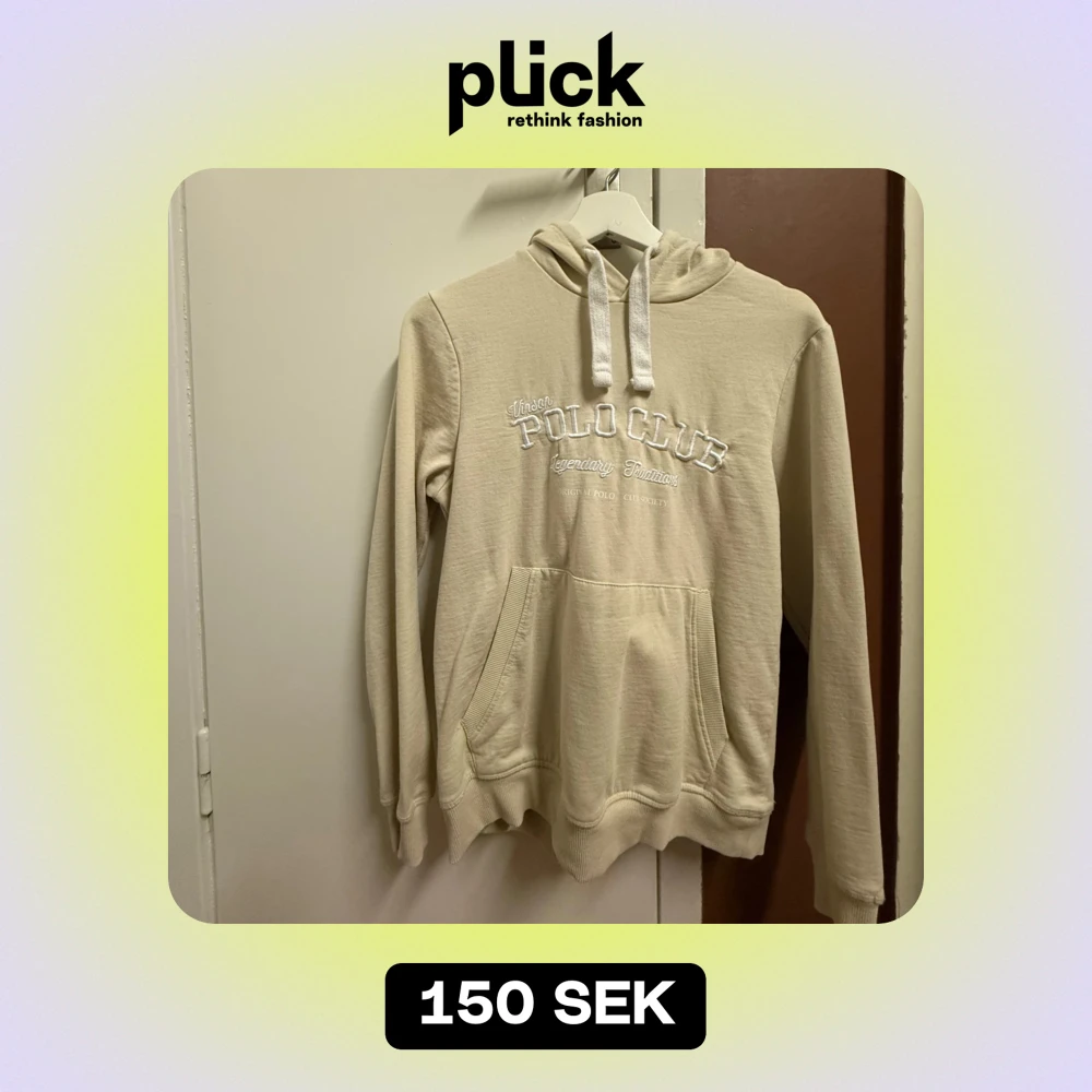 SĂ€ljer en snygg ljusbeige hoodie frĂ„n Polo Club med fina vita detaljer. Den har en klassisk design med broderad text pĂ„ framsidan och en mysig huva med dragsko. Den Ă€r oanvĂ€nd och har storlek Sđ„°