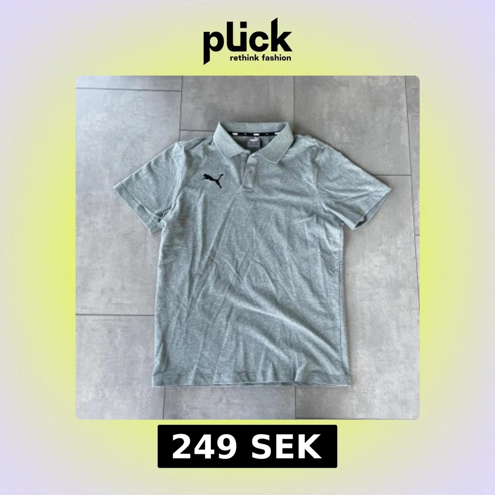 Snygg grå pikétröja från Puma med klassisk krage och knäppning framtill. Tröjan har korta ärmar och svart Puma-logga broderad på bröstet. Perfekt för en clean och sportig stil. Tillverkad i mjuk bomullsmix som känns skön mot huden. Mycket bra skick, sparsamt använd.