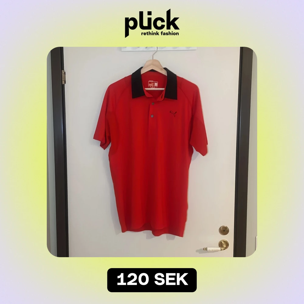 Säljer en snygg röd pikétröja från Puma i mycket bra skick. Den har en svart krage och knappar framtill. Perfekt för både vardag och sportiga aktiviteter. Passar bra till jeans eller shorts för en avslappnad look. Pris går alltid att förhandlas!
