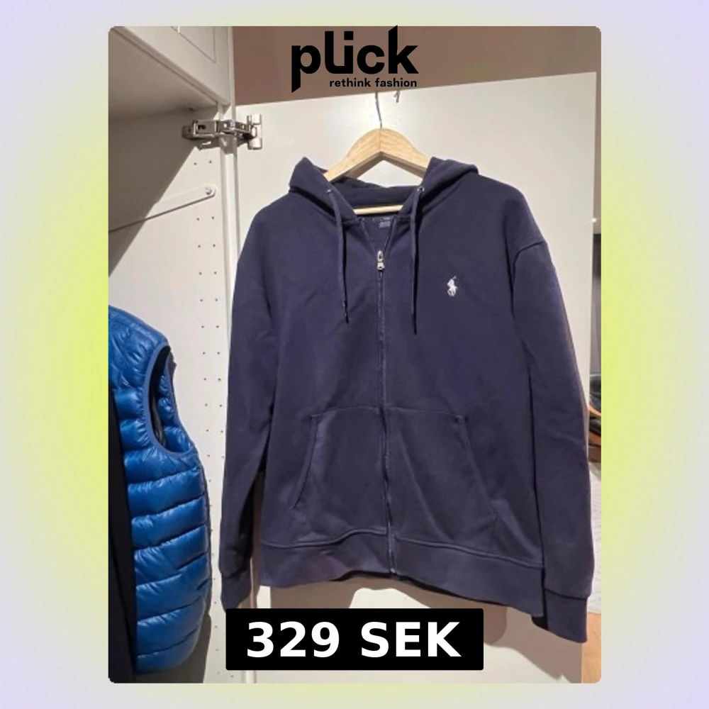 Snygg marinblå Ralph Lauren hoodie med zip. Storlek L men sitter mer som storlek M skulle jag säga. Fint skick och säljs pga att den inte används. Ställ gärna frågor om du har någon🙌