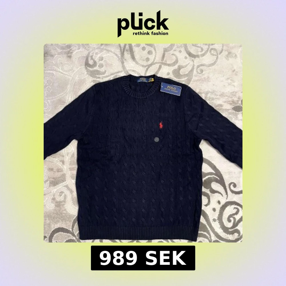 Snygg mörkblå stickad tröja från Polo Ralph Lauren. Helt ny och aldrig använd, så det finns inga fel med den.