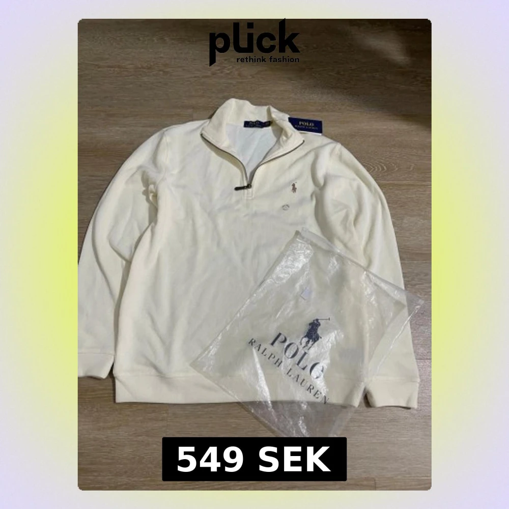 Klassisk vit halvzip-tröja från Polo Ralph Lauren med broderad logga på bröstet. Tröjan har hög krage med dragkedja och ribbade muddar vid ärmslut och nederkant. Perfekt för en clean och stilren look.