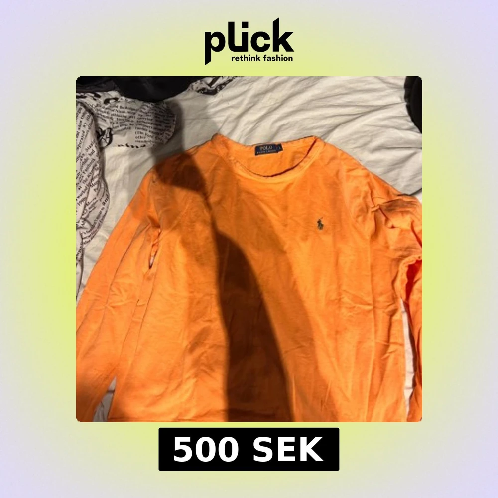 Säljer en snygg orange långärmad tröja från Polo Ralph Lauren. Tröjan har en klassisk design med det ikoniska logotypen broderad på bröstet. Perfekt för en stilren och avslappnad look. Skick 10/10 säljer den på grund av att den aldrig använda pris kan diskuteras vid en snabb affär