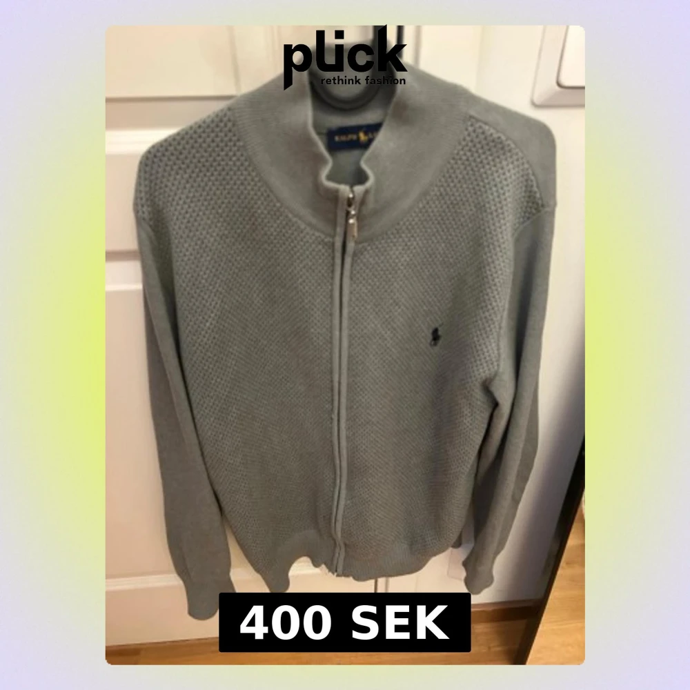 Snygg grå ziptröja från Ralph Lauren med diskret strukturstickat mönster och klassisk logga broderad på bröstet. Tröjan har hög krage, långa ärmar och ribbade muddar. Perfekt till lager på lager och enkel att matcha.