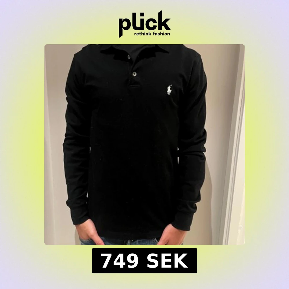 Klassisk svart långärmad pikétröja från Ralph Lauren med vit broderad logga på bröstet. Tröjan har krage, knappar vid halsen och är gjord i mjuk bomull. Perfekt för en clean och stilren look. Aldrig använd ba legat i min garderob.