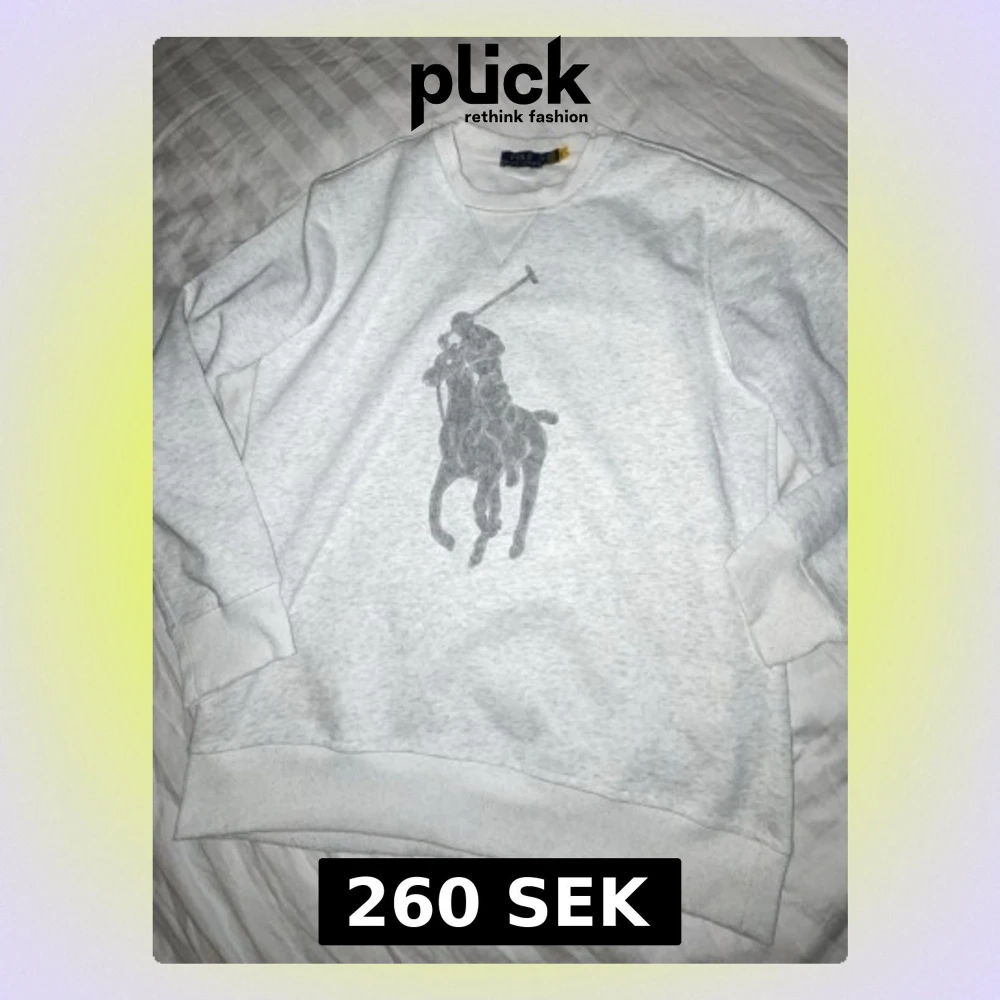 Sweatshirt från Polo Ralph Lauren med stort grått polospel-tryck på bröstet. Helt ny. S/M. Ej orginal. 260kr färdig prutat o klart!