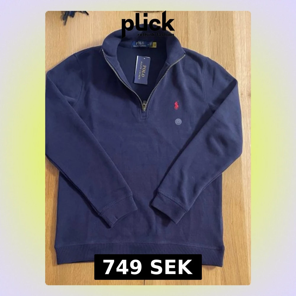 Snygg marinblå tröja med halv dragkedja från Polo Ralph Lauren. Klassisk design med röd broderad logga på bröstet, ribbade muddar och hög krage. Tillverkad i mjuk bomull för en bekväm känsla.