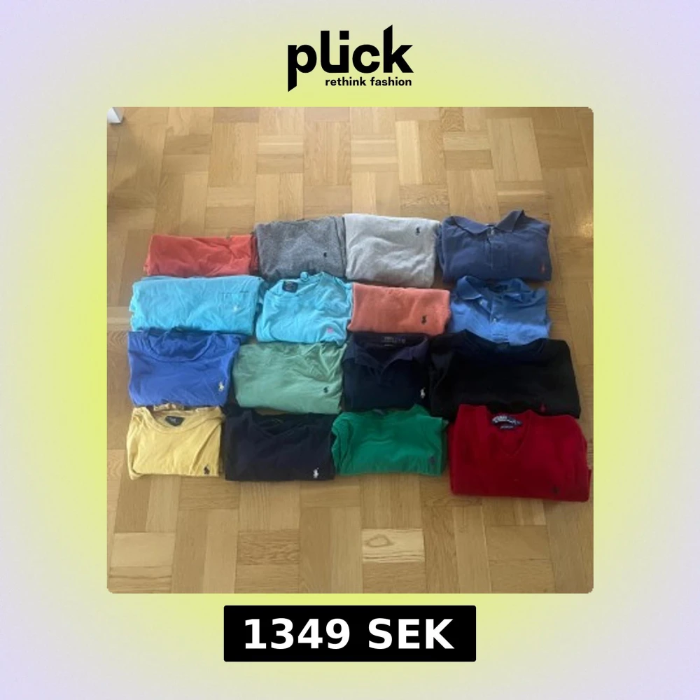 Säljer ett gäng klassiska pikétröjor från Polo Ralph Lauren i olika färger som blå, röd, grön, gul, grå och svart. Tröjorna har broderad logga på bröstet och finns både med och utan krage. Perfekta för dig som vill börja med reseling. Du kan sälja kläderna för dubbelt så mycket