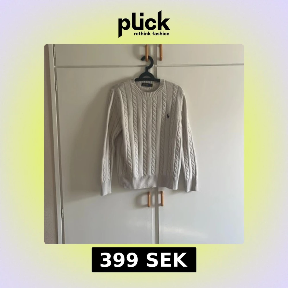 Vit kabelstickad tröja från Polo Ralph Lauren med klassisk rund halsringning och broderad mörkblå logga på bröstet. Tröjan har ribbade muddar och är långärmad, perfekt för lager-på-lager under höst och vinter.