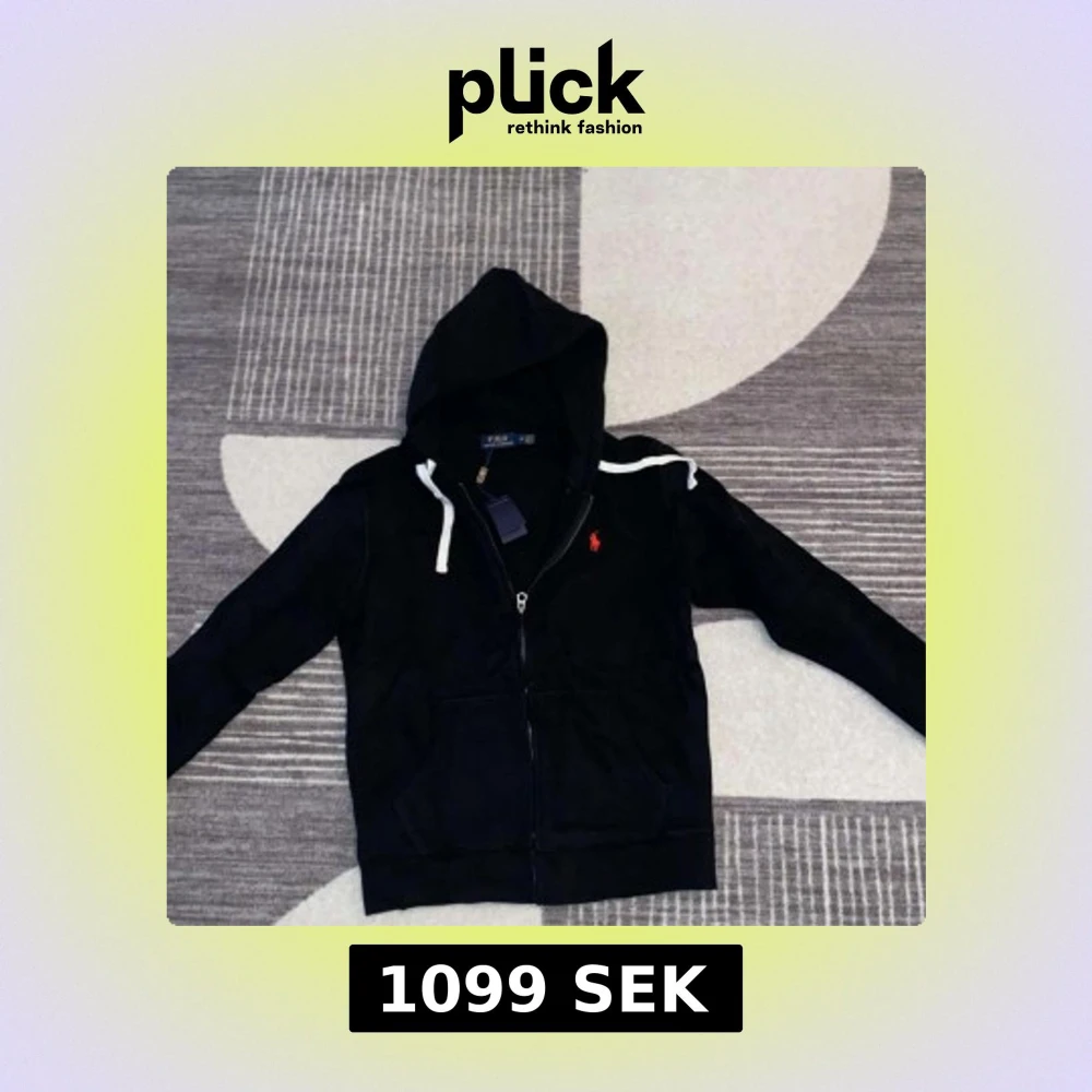 Svart hoodie från Polo Ralph Lauren med dragkedja, vit snörning i huvan och röd broderad logga på bröstet. Klassisk passform med känguruficka och mjukt material som känns skönt mot huden. Perfekt för chill dagar eller när du vill ha en stilren look.