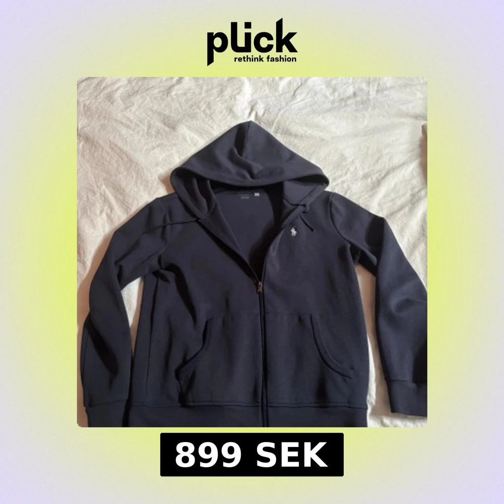 Snygg mörkblå hoodie från Polo Ralph Lauren med dragkedja och huva. Tröjan har broderad logga på bröstet, praktiska fickor och snörning i huvan. Tillverkad i mjuk bomullsmix, perfekt för chill dagar eller när du vill ha en clean look. Nästan ny skick