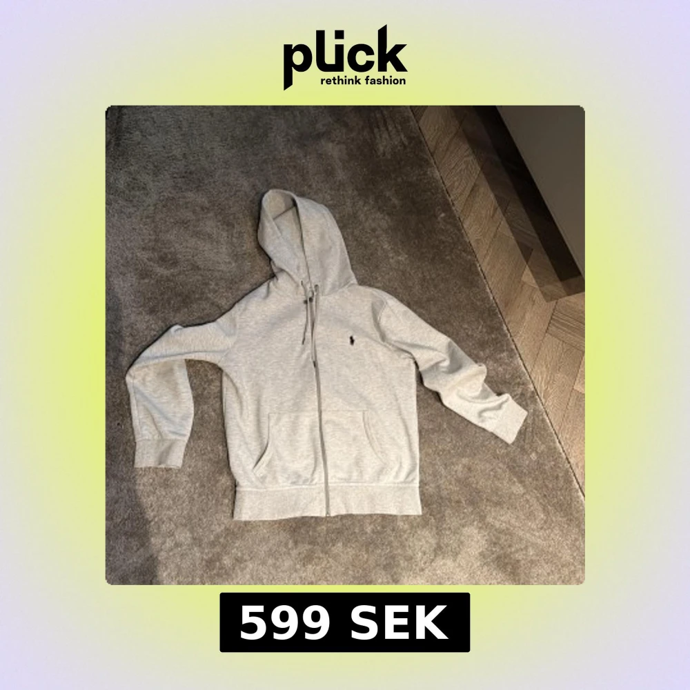 Säljer en ljusgrå hoodie från Polo Ralph Lauren i storlek S. Tröjan har huva med snörning, dragkedja framtill och två fickor. Klassisk logga broderad på bröstet. Perfekt för chill dagar och enkel att matcha med jeans eller joggers.