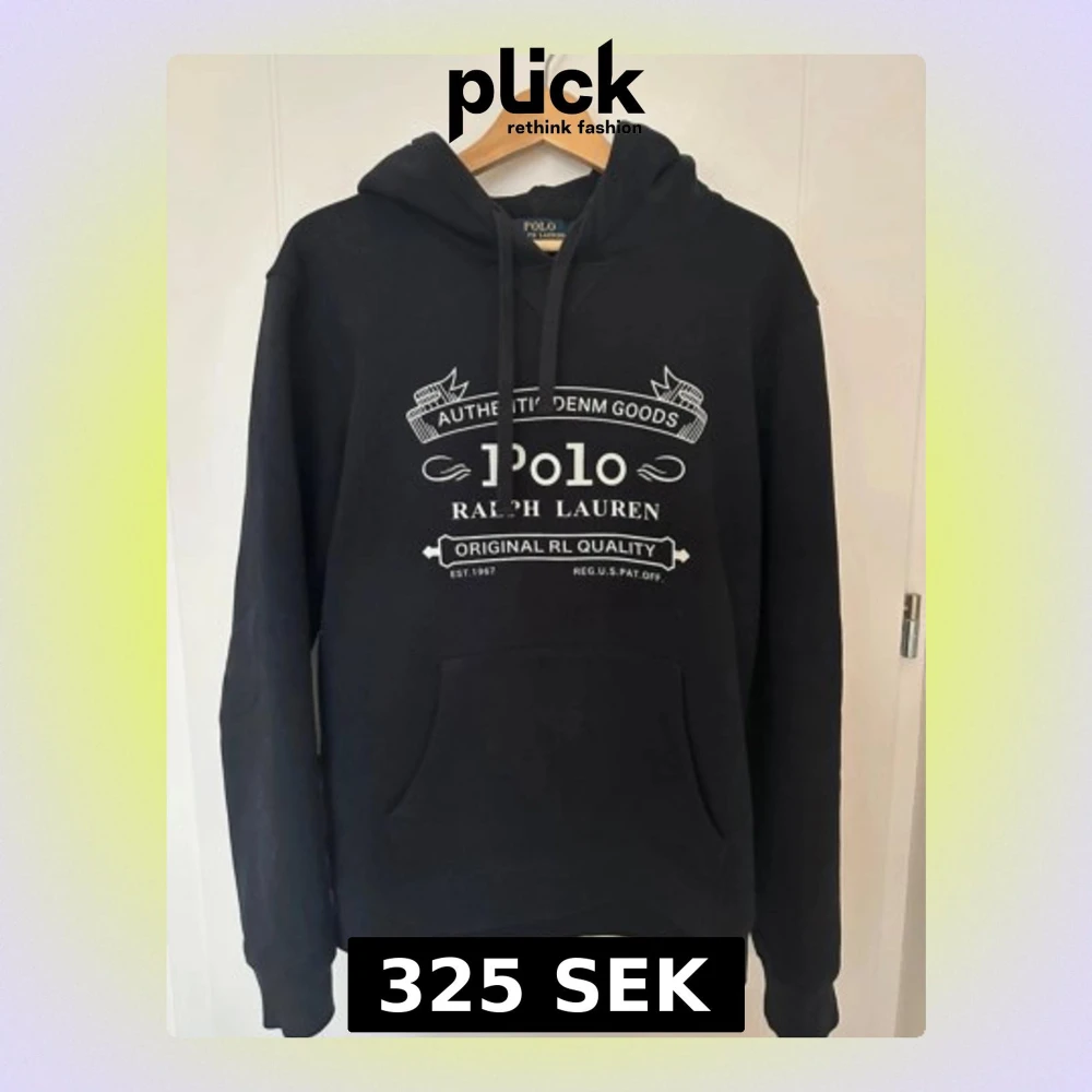 Svart hoodie från Polo Ralph Lauren i storlek XL med vit tryckt logga och text på bröstet. Tröjan har huva med snörning, stor magficka och långa ärmar. Mjuk och skön bomullsmix som passar perfekt för chill dagar. Snygg streetstil och klassisk design.