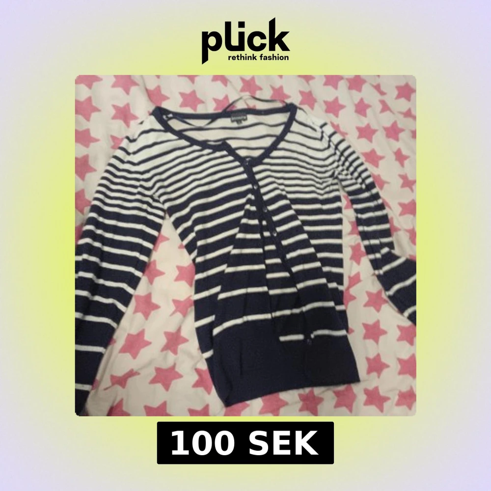 Mörkblå och vit randig kofta från Dressed up med knappar. den är långärmad och i mjukt, tunt material. Använde lite i 2023-2024