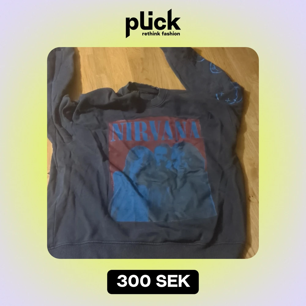 Cool svart Nirvana hoodie med tryck av bandet på framsidan. Ärmarna har blåa smiley-mönster som ger en extra touch. Perfekt för alla Nirvana-fans som vill ha en bekväm och stilren tröja. Passar bra till både vardag och konsert!