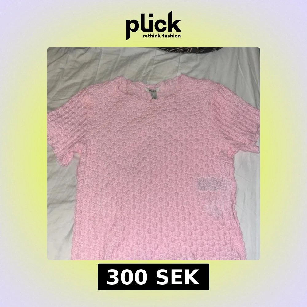 Säljer en söt rosa topp från Aware med ett unikt texturerat mönster. Toppen har korta ärmar och är perfekt för en avslappnad stil. Den är använd fem gånger.