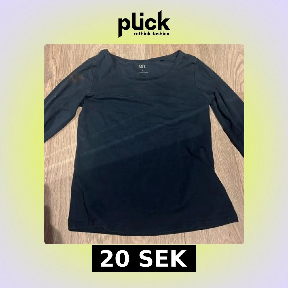 Säljer en svart långärmad topp från 157. Perfekt för en enkel och stilren look. Toppen har en rund halsringning och är tillverkad i ett mjukt material. Passar bra till både jeans och kjol. Hör av dig vid intresse!(har en fläck som inte går bort)