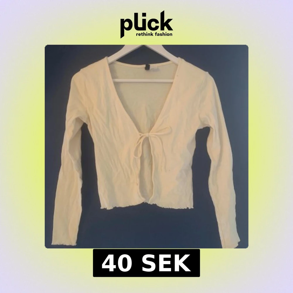 Säljer en vit kofta från H&M Divided. Den har långa ärmar och en knytning framtill. Perfekt för lager-på-lager och att ha över en topp. Koftan är i ett mjukt material och har en lätt ribbad kant.
