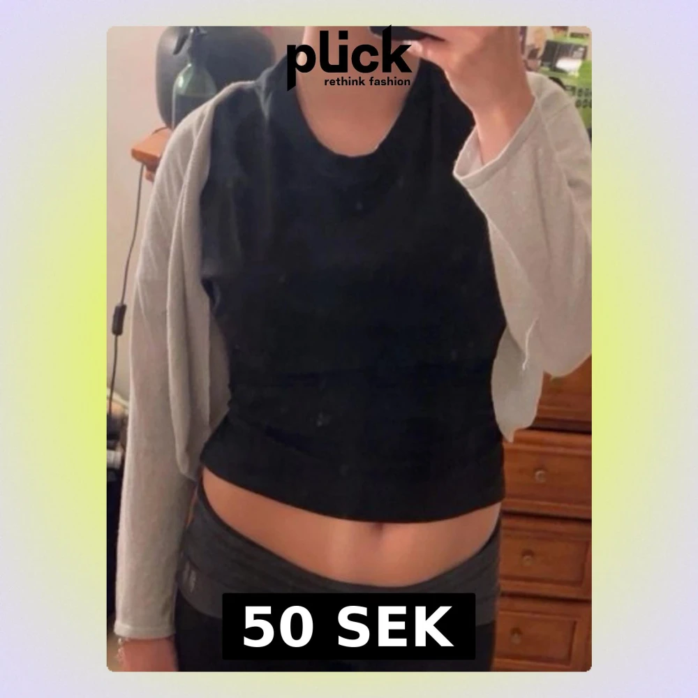 Säljer en ljusgrå glittrig kofta med lång ärm och croppad passform. Perfekt att slänga över ett linne eller t-shirt för en extra touch. Materialet är mjukt och har en lätt skimrande effekt som gör outfiten lite mer speciell.