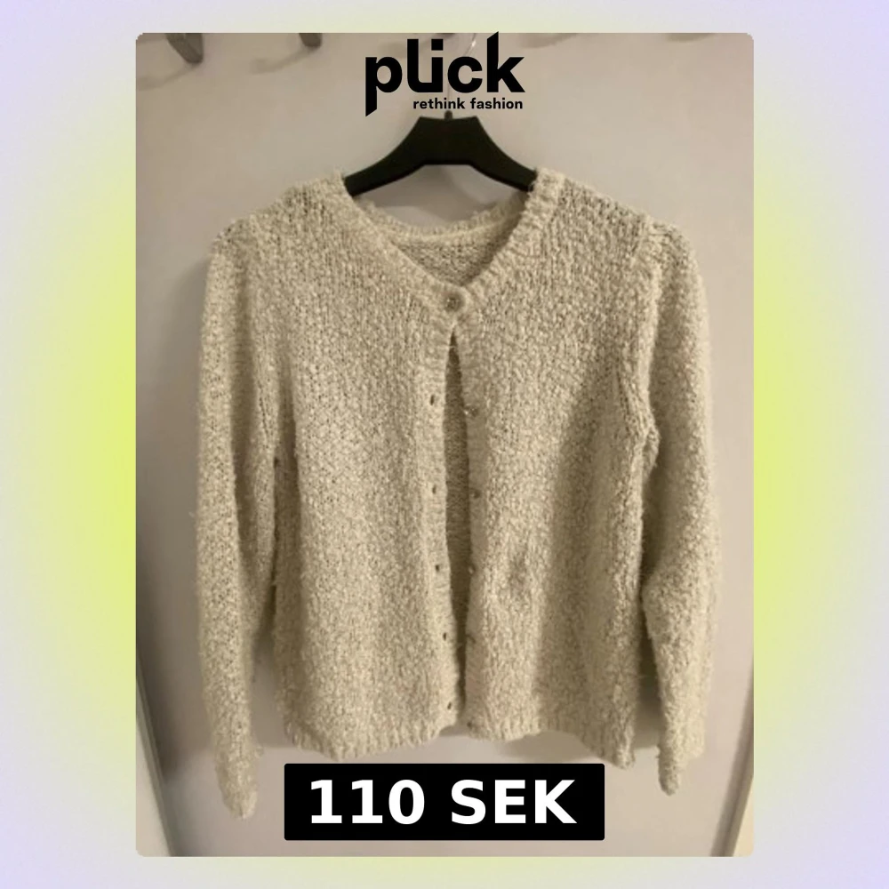 Mysig beige kofta med glittriga inslag och knappar framtill. Koftan är stickad med en fluffig struktur och har lång ärm. Går att styles på flera olika sätt och passar till de mesta! Har tyvärr klippt bort lappen men skulle säga att storleken är S, funkar dock för mindre och större också!! Tror att märket är lindex men inte säker😅