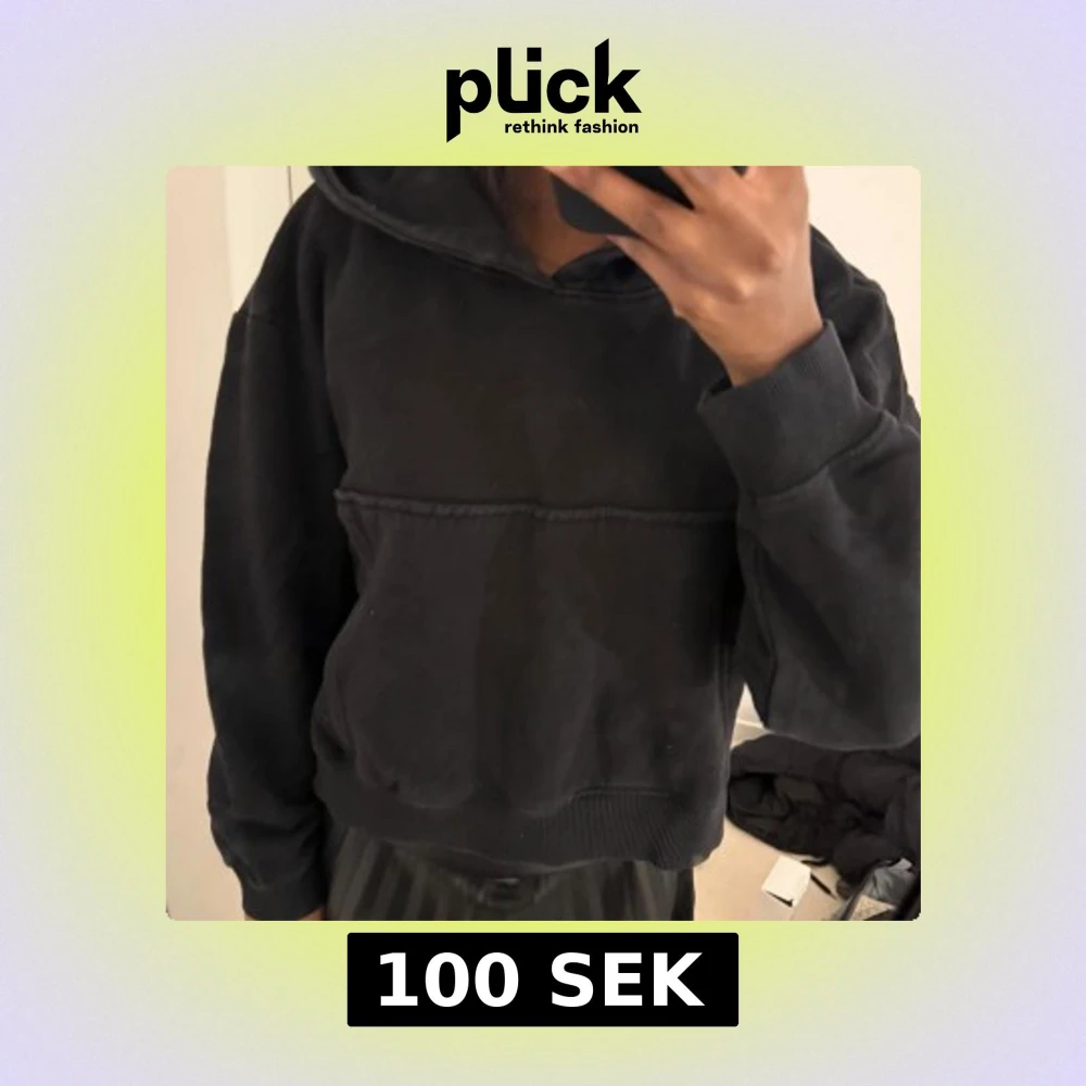 Säljer en svart hoodie med huva och magficka. Tröjan har en avslappnad passform och ribbade muddar vid ärmslut och nederkant. Perfekt för en chill och bekväm stil.