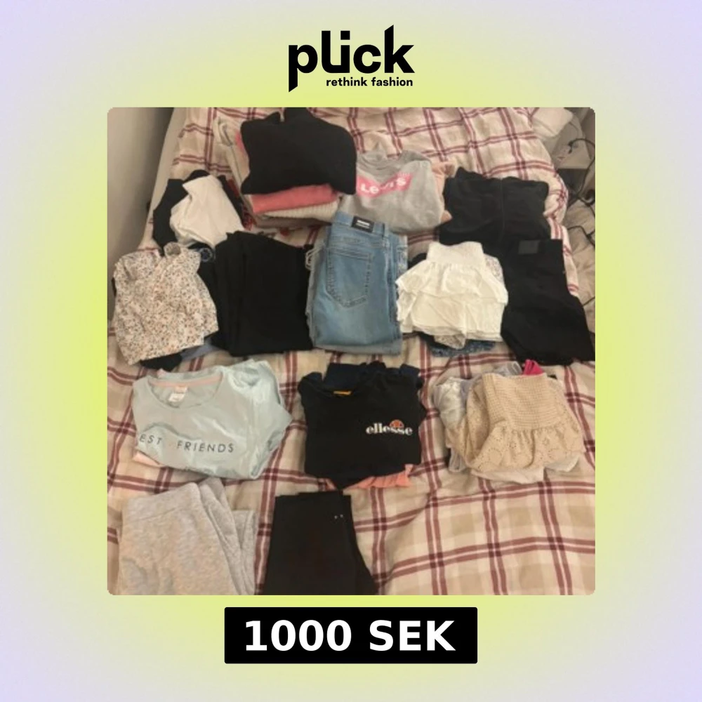 säljer nu 48 plagg som ett paket. Kläderna är i storlek 160-S, men har använts samtidigt. 11 är märkesplagg, som Levis Champion, Dr Denim, Pepe Jeans och Ellesse. Allt är i mycket fint använt eller nyskick. Riktigt fyndläge - endast ca 20 kr per plagg. Kan skickas mot portokostnad Skriv för info om vad för plagg osv💓