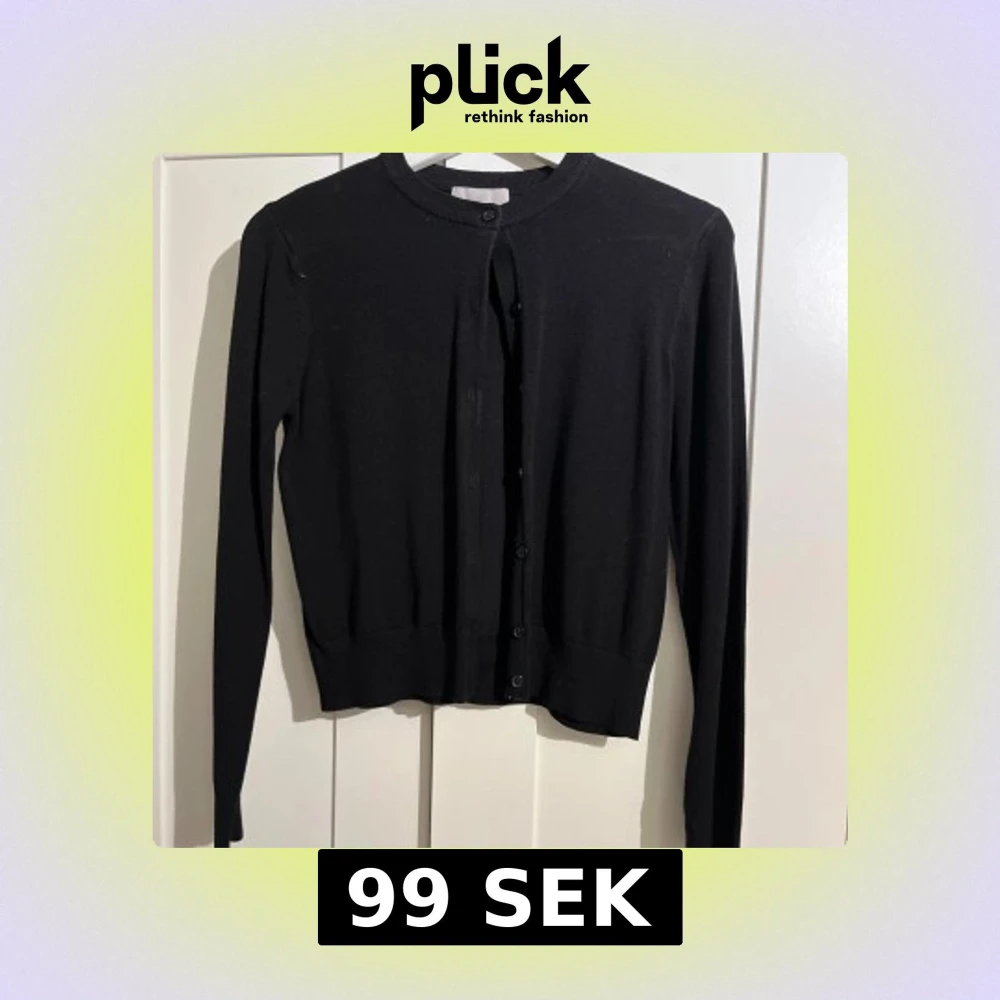 En klassisk svart kofta med rund halsringning och knäppning framtill. Långärmad och i ett mjukt, tunt material som passar perfekt till lager-på-lager. Enkel och stilren design som funkar till det mesta.